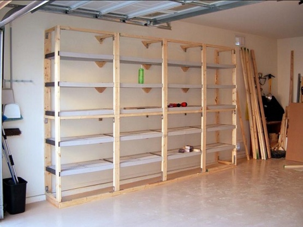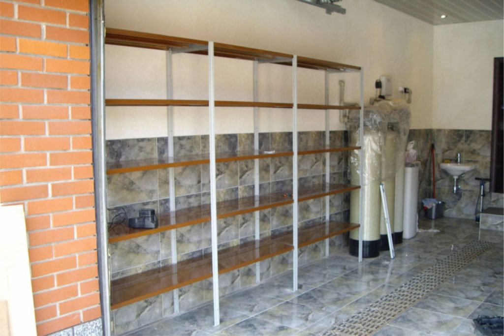 Stationäre Regale werden einmal installiert und an den Garagenwänden befestigt. Sie sind langlebig und zuverlässig, können viel Gewicht aushalten. Prefab-Typ kann unter einer bestimmten Garage, basierend auf den Abmessungen gekauft werden. Es ist einfach zu montieren, und es ist möglich, es an jedem geeigneten Ort zu platzieren und die individuelle Höhe jedes Regals einzustellen.