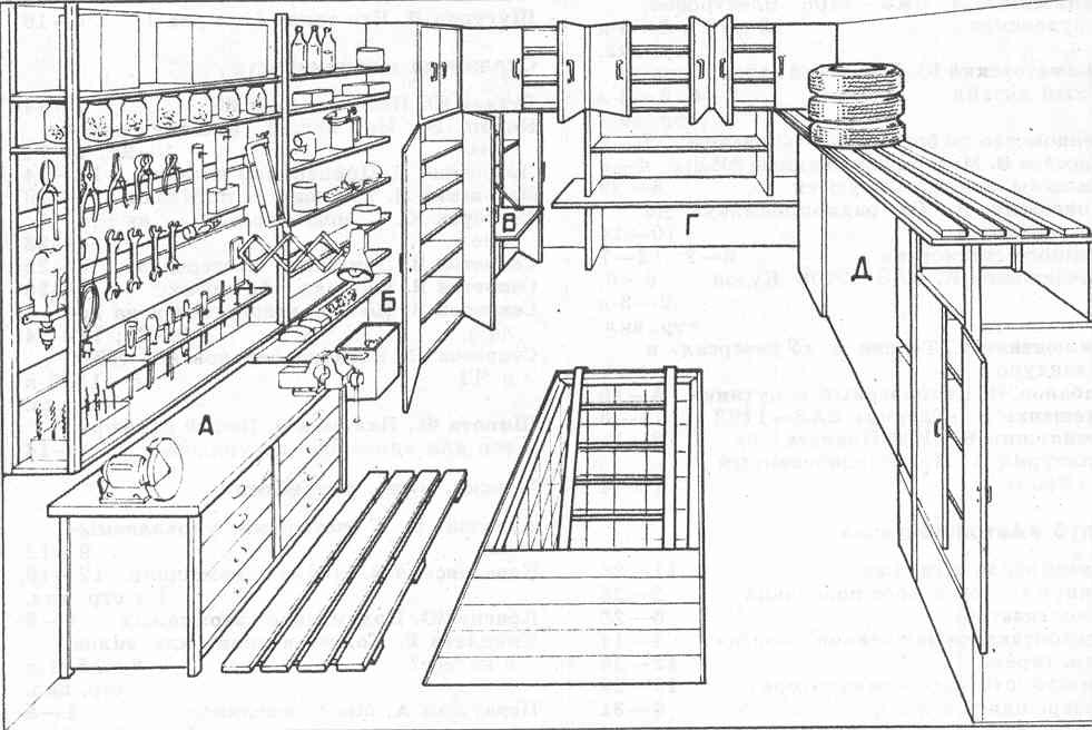 Optionen Regale, Schränke, Regale können unterschiedlich sein, und in jedem Fall hängt alles von der spezifischen Garage ab und was in den Lagersystemen platziert wird.