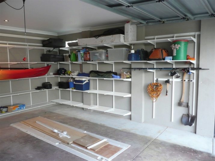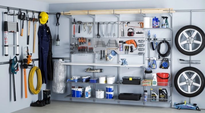 Die Verwendung von Regalen ermöglicht es Ihnen, all diese Probleme zu lösen, indem Sie eine angenehme Umgebung im Raum schaffen. Es ist nicht notwendig, die Garage in eine ideale Reihenfolge zu bringen, aber jedes Ding muss seinen eigenen Platz haben, dann wird es mehr Ordnung geben und es wird leichter sein, das Richtige zu finden.