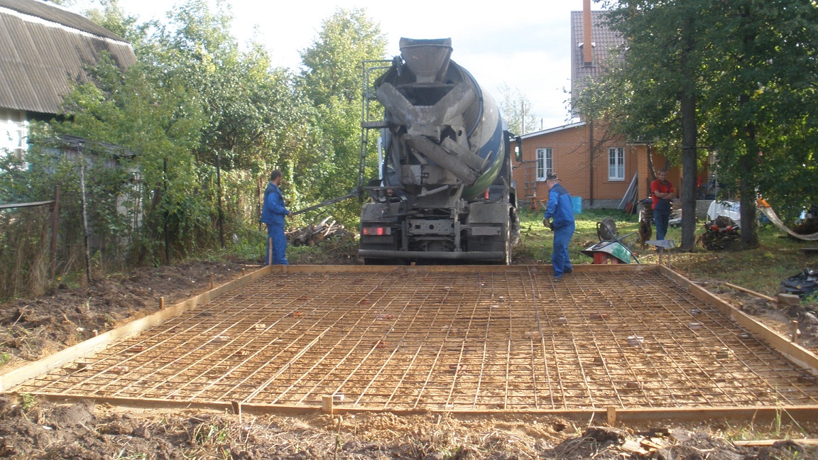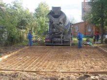 Zuallererst müssen Sie die Basis gut ausrichten. Legen Sie etwa 5 cm eine Schuttschicht darauf, dann ist es notwendig, den Boden mit Betonlösung zu füllen und gut zu ebnen. Eine Betonschicht wird beeindruckend sein, sie muss gut trocknen können.