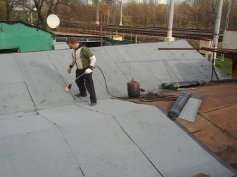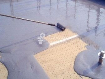 Die nächste Schicht ist Dachmaterial und Isolierung. Als nächstes müssen Sie den Zementestrich ausstatten und ausgießen.Als abschließende Deckschicht kann beispielsweise Aquiazol oder Rubemax verwendet werden. Auf der Vorder- und Stirnseite des Daches ist es besser, Visiere zu bauen.