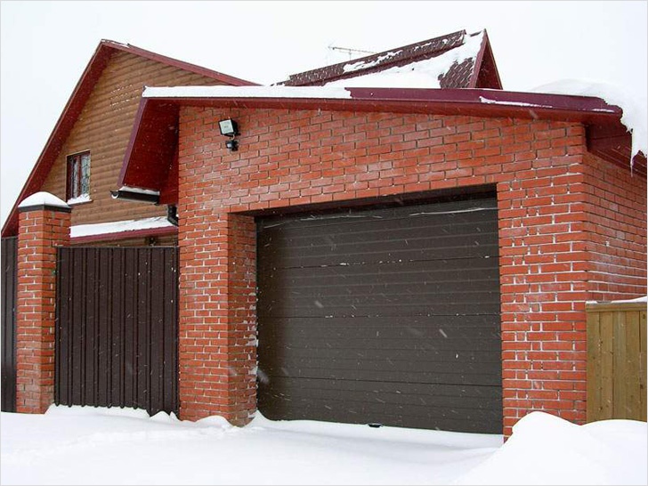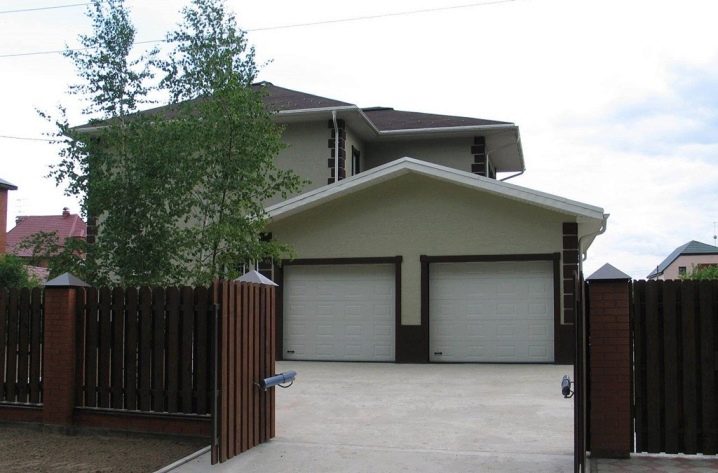 Angeschlossene Garage ist praktisch, wenn das Hauptgebäude in der Nähe des äußeren Teils des Grundstücks ist. Mit dieser Anordnung wird es sogar möglich, die Kommunikation mit dem Haus zu kombinieren.