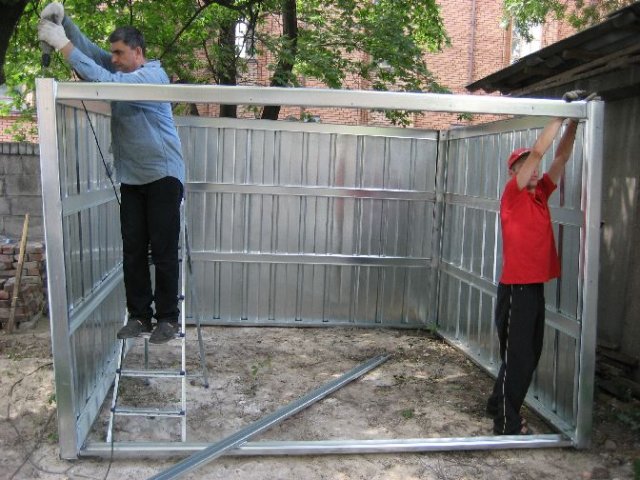 - Hergestellt aus Metall. Für seine Herstellung erfordert professionelles Schweißen. Dies ist eine leichte Konstruktion, aber eine solche Garage ist sehr kalt und erfordert immer eine Isolierung.