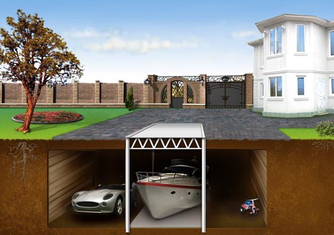 Es gibt sogar einige Autoliebhaber, die eine Tiefgarage bauen. Es ist für andere nicht sichtbar und spart Platz auf der Website. Es ist einfach, alle Kommunikationen direkt von zu Hause zu bringen: Elektrizität, Heizung, Klempnerei und sogar Abwasserkanäle. Darüber hinaus wird es möglich sein, direkt von zu Hause aus zu kommen.