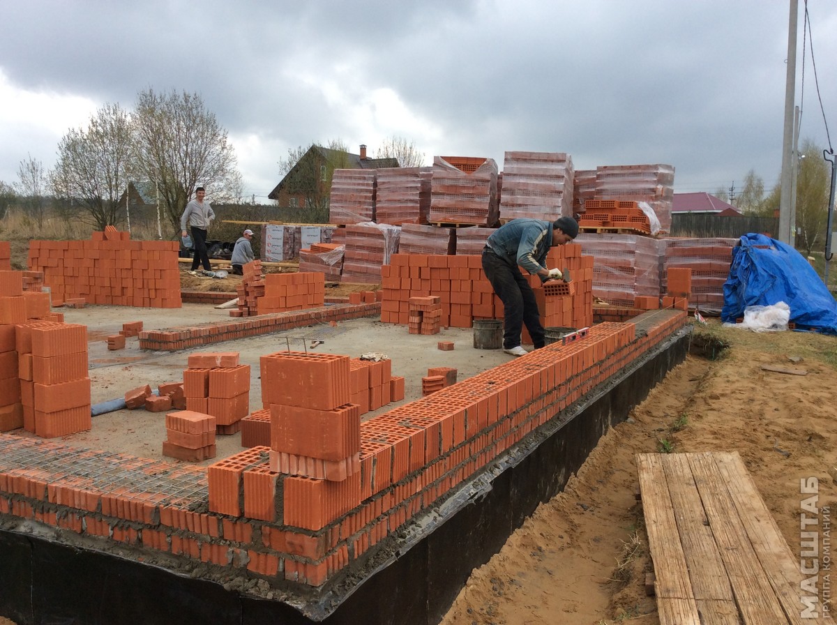 - Hergestellt aus Ziegeln. Dies ist ein Hauptgebäude, das viele Jahre dauern wird. Aber gleichzeitig ist es das schwierigste und teuerste.