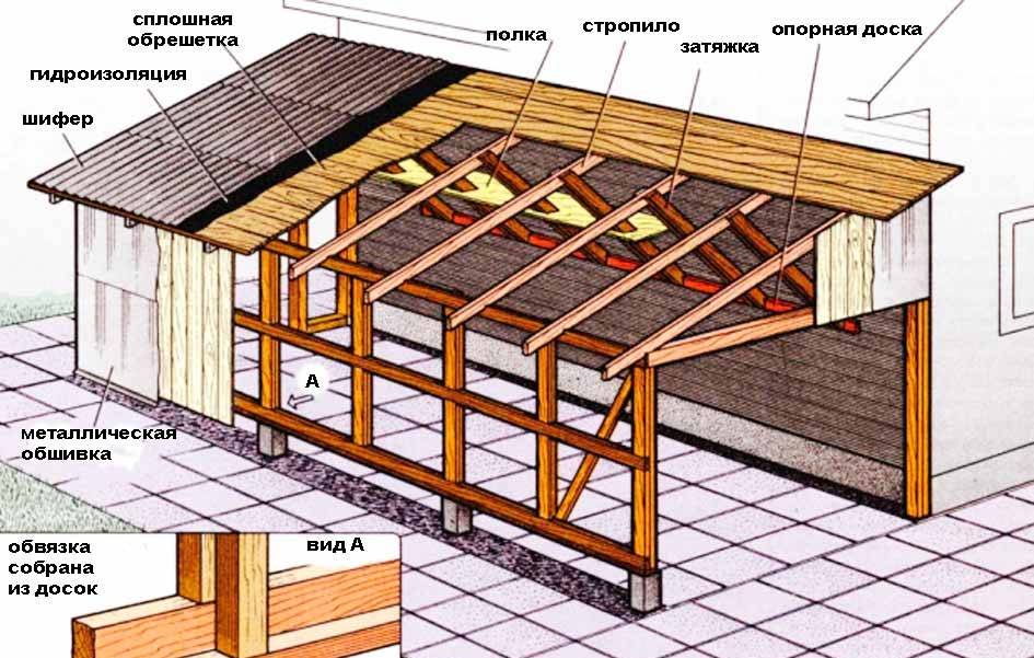 - Rahmen-Garage. Es ist leicht zu erziehen. Alle verfügbaren Materialien können verwendet werden.