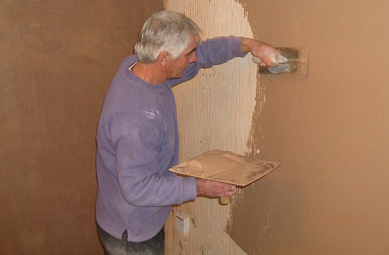 Kalksandputze werden unter Zugabe einer kleinen Menge Zement aufgetragen. Glimmer kann dem Terrazit-Putz hinzugefügt werden, um den Wänden einen attraktiven Glanz zu verleihen.Nach dem Trocknen der Schicht solchen Pflasters, muss man abwischen. Mit Hilfe von Stitching können Sie ihnen eine andere Form und Farbe geben.
