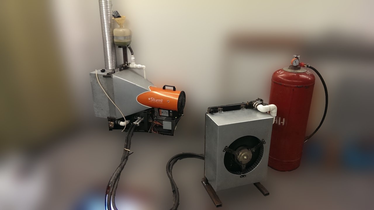Sie können auch die Lufterwärmung verwenden. Es ist notwendig, einen Lüftungskanal zu bauen, einen Wärmetauscher und einen Ventilator aufzunehmen. Am effektivsten ist die Heißluftrichtung von unten nach oben.