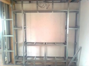 Es gibt auch Nachteile. Gipsregale halten schweren Belastungen nicht stand. In diesem Fall werden zwei Platten auf einmal oder Holzeinlagen mit zusätzlicher Verstärkung verwendet. Achten Sie darauf, einen Rahmen aus Metall oder Holzlatten mit ihrer Befestigung an der Wand zu errichten. Trockenbau hat keine Schalldämmung.