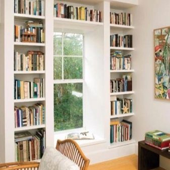 Es ist möglich, um Gipskartonplatten um Fenster- und Türöffnungen zu machen. In der Nähe des Fensters können Sie ein Podium mit einer Nische für die Lagerung organisieren. Bei der Installation müssen Sie das Gewicht der Person berücksichtigen, vergessen Sie nicht die Batterien. Wenn Sie das belüftete Gitter nicht setzen, wird das Zimmer während der kalten Jahreszeit schlecht erhitzt. Die Regale können von der Öffnung bis zur Wand oder in Form von schmalen Kanistern bis zur Decke reichen.Über den Türen können Sie ein Zwischengeschoss organisieren, auf dem Sie voluminöse, aber leichte Objekte platzieren können.