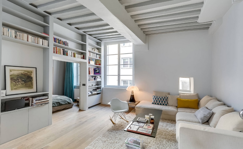 - In kleinen Wohnungen können Regale um die Tür- und Fensteröffnungen gelegt werden. Einfach und funktional.