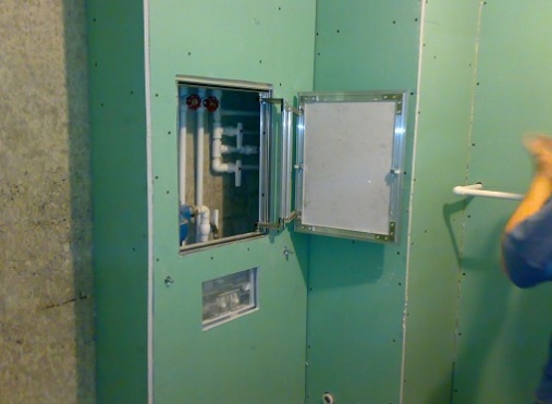 Die Kommunikation kann in einer Gipskartonbox versteckt werden. Wenn es sich um Heizrohre handelt, müssen die Lüftungsgitter montiert werden.. Von außen können Sie mehrere kleine dekorative Regale platzieren.