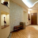 Gipsdecke ist eine gute Gelegenheit, nicht nur der Decke eine elegantere Optik zu geben, sondern auch eine bedeutende Rolle im Inneren des Raumes zu spielen, um zum Beispiel jedes Objekt des Interieurs hervorzuheben. In diesem Fall die Spalten.