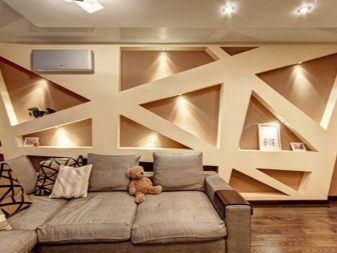 Früher wurde die Gipskartonplatte ausschließlich zum Nivellieren der Oberfläche verwendet, aber nach einigen Modifikationen und dem Aufkommen einer breiten Palette von Gipskartonplatten begannen sie als strukturelle Elemente verwendet zu werden. Insbesondere kam das Material dazu, die Designer für die kreativen Möglichkeiten zu probieren, die er ihnen gab.
