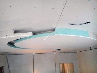 Die Verwendung von Gipskartonplatten, um den Wänden und der Decke während der Reparatur eine glatte Oberfläche zu verleihen, ist seit langem weit verbreitet. Mit Gipskartonplatten ist es möglich, komplizierte Designs zu entwerfen und die Decke zu dekorieren. Solche Decken schaffen interessante Lichtlösungen und werden zu echten Kunstwerken.