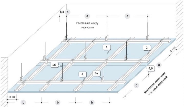 An den Stellen der Querverbindung müssen Sie eine Brücke aus dem gleichen Material wie das Profil befestigen. Dann setzen Sie die Krabbe - ein kreuzförmiges Element zum Aushärten der Rahmenstruktur. Bestimmen Sie als Nächstes die Position der Aufhängung. Die Hauptfederung wird von der Wand auf 20 - 25 - in einem Abstand von 50 Zentimetern - eingestellt.