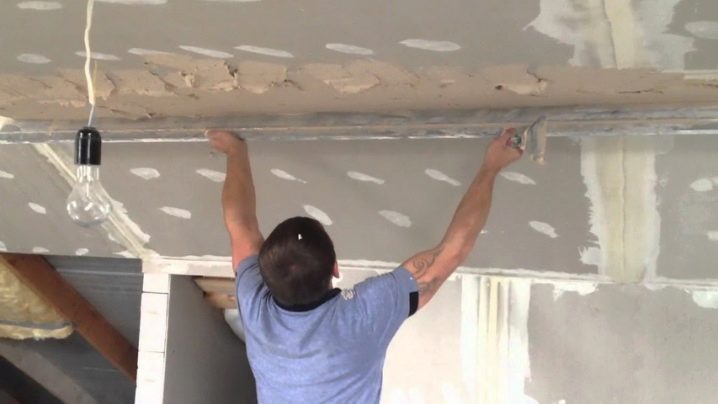 Zu Beginn muss die resultierende Ebene gleichmäßig gemacht werden - dies wird helfen, alle Arten von Nähten, Nähten und Fugen von Blättern zu verbergen. Wenn Sie darüber hinaus eine Frage zum Anstrich oder zum Veredeln mit dünnem Dekorputz haben, müssen Sie die Decke auf jeden Fall nivellieren.