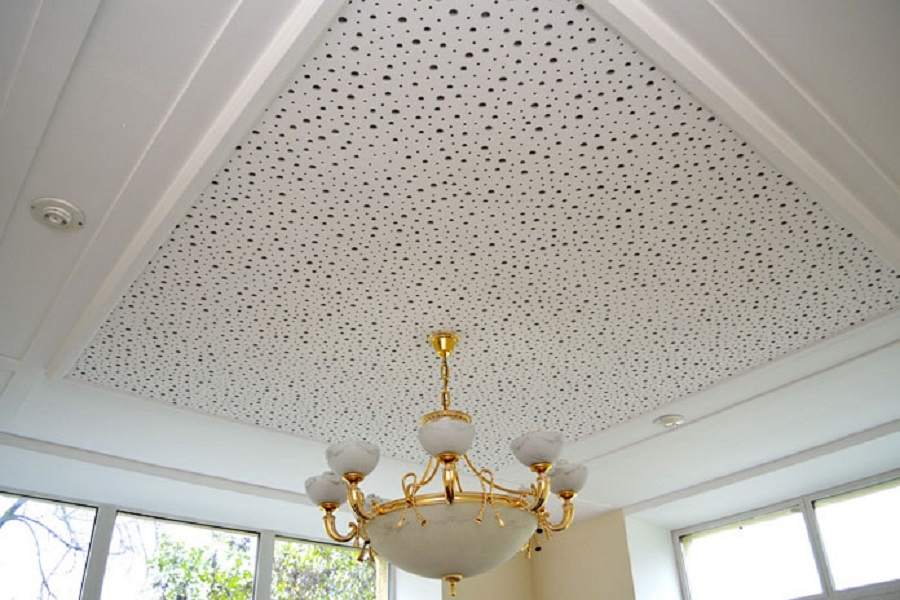 Falsch ist die Tatsache, dass alle isolierenden Materialien dicker sind und eine signifikante Masse haben. Akustikdecken sind so konzipiert, dass sie sich in ihrer Dicke nicht von gewöhnlichen Spannstrukturen unterscheiden. Das ganze Geheimnis ist eine spezielle Perforation - die Schallwellen werden in den Poren der Luft zerlegt, die Oberfläche absorbiert eine große Menge an dB. Ähnlich funktioniert die Isolation in die andere Richtung: Die Nachbarn oben hören deine laute Musik oder laute Gesellschaft nicht.