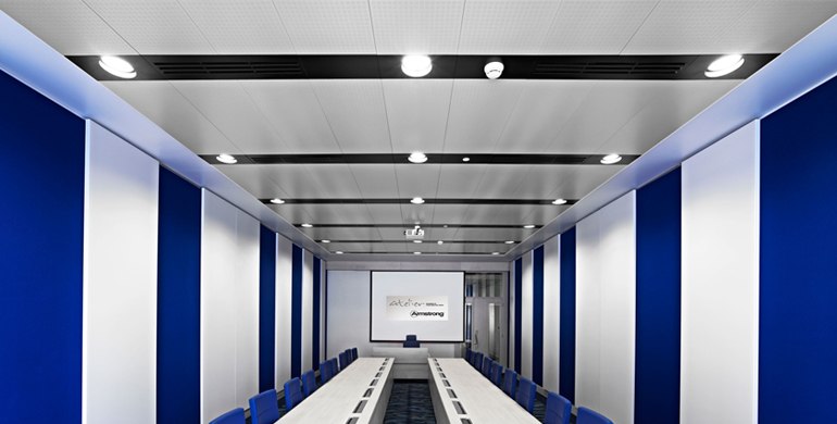 Angesichts der hohen Schalldämmeigenschaften solcher Decken sind sie in Büroräumen zu sehen. Dies gilt insbesondere dann, wenn sich die Bürofläche im ersten Stock eines Wohnhochhauses befindet. Lärm von den Wohnungen kann die Arbeit stören.Wenn es einen Laden im ersten Stock gibt, werden die zusätzlichen Geräusche in den Wohnungen gehört. Akustische Lärmschutzdecken helfen, Lärm in beide Richtungen zu beseitigen, und absorbieren das Echo in dem Raum, in dem sie installiert sind.