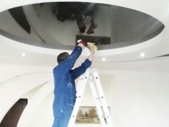- Und dennoch - Sie sollten die Spanndecke nicht in einen erbärmlichen Zustand bringen und dann hartnäckig versuchen, hartnäckige Verschmutzungen zu beseitigen. Dies kann zu starken Deformationen der Leinwand, Glanzglanzverlust und in einigen Fällen sogar zu einer Erneuerung der Oberfläche führen. Aber zu häufiges Reinigen der Decke kann mehr schaden als nützen. Daher ist es ausreichend, die Reinigung jedes Semester durchzuführen, mit Ausnahme von Notfällen, wenn die Folgen sofort beseitigt werden müssen.
