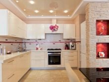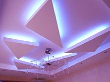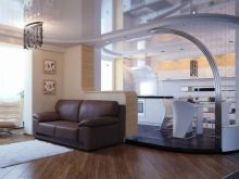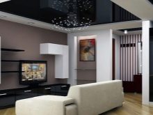 - Selbst lakonische Optionen "stehlen" die Höhe der Wände. In der Regel wird bei einer solchen Konstruktion die Decke um 8 - 10 cm niedriger, was besonders in kleinen Räumen auffällt.