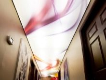 - Im Flur und im Flur befinden sich entsprechende Hochglanzbeschichtungen. In diesem Fall kann das Tuch ein Bild des Himmels oder ein einfaches stilisiertes Muster auf einem weißen Hintergrund haben.
