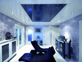 Ungewöhnliche Sorten umfassen durchscheinende Materialien. Sie zeichnen sich dadurch aus, dass sie mit Hilfe einer Hintergrundbeleuchtung den Raum eines Raumes mit einem diffusen Licht ausfüllen können. So können Sie einen leuchtenden Deckeneffekt oder sogar eine Imitation des Sternenhimmels erzeugen.