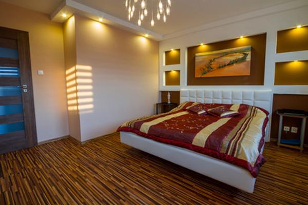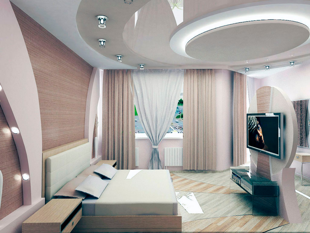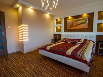 - Für das Schlafzimmer ist Glanz unerwünscht. Hier sind bessere Designs mit einer matten Oberfläche. Es ist äußerst wichtig, dass der Farbton des Materials leicht ist.