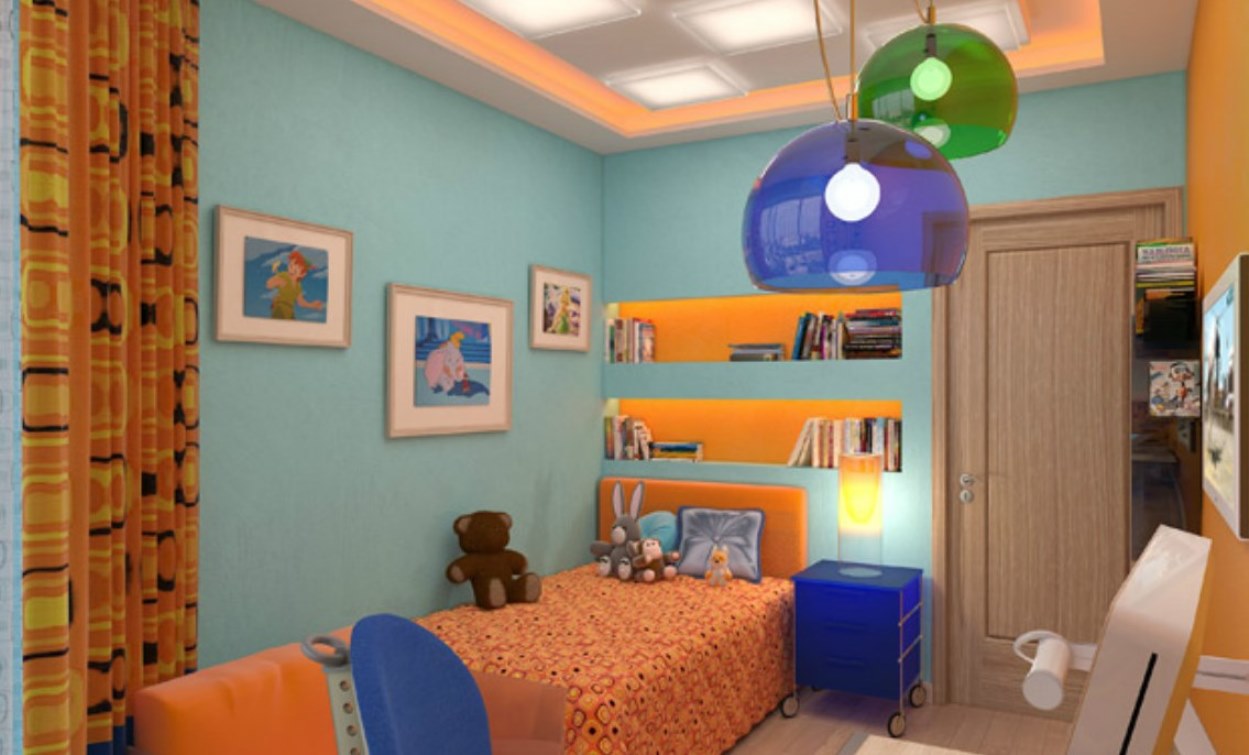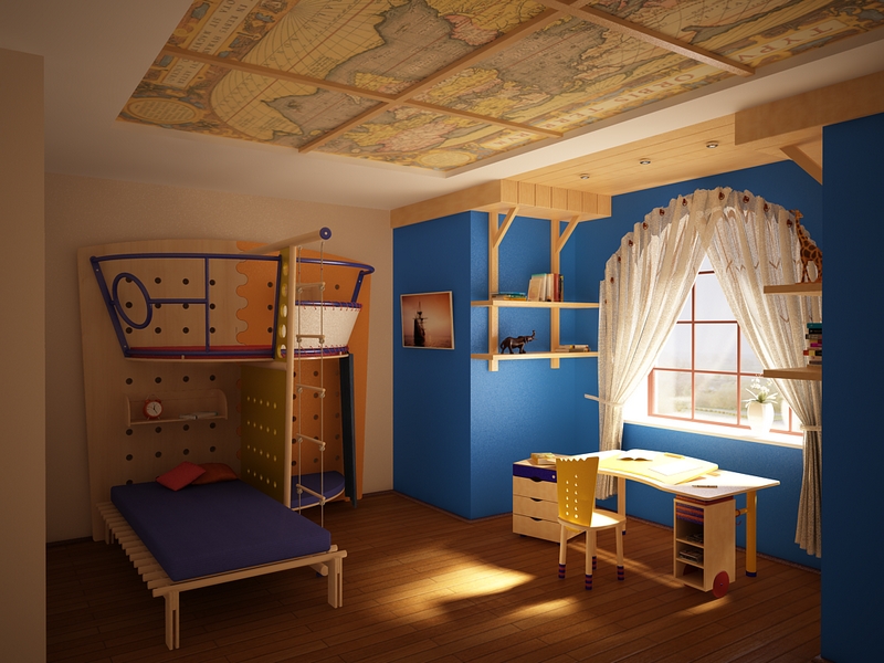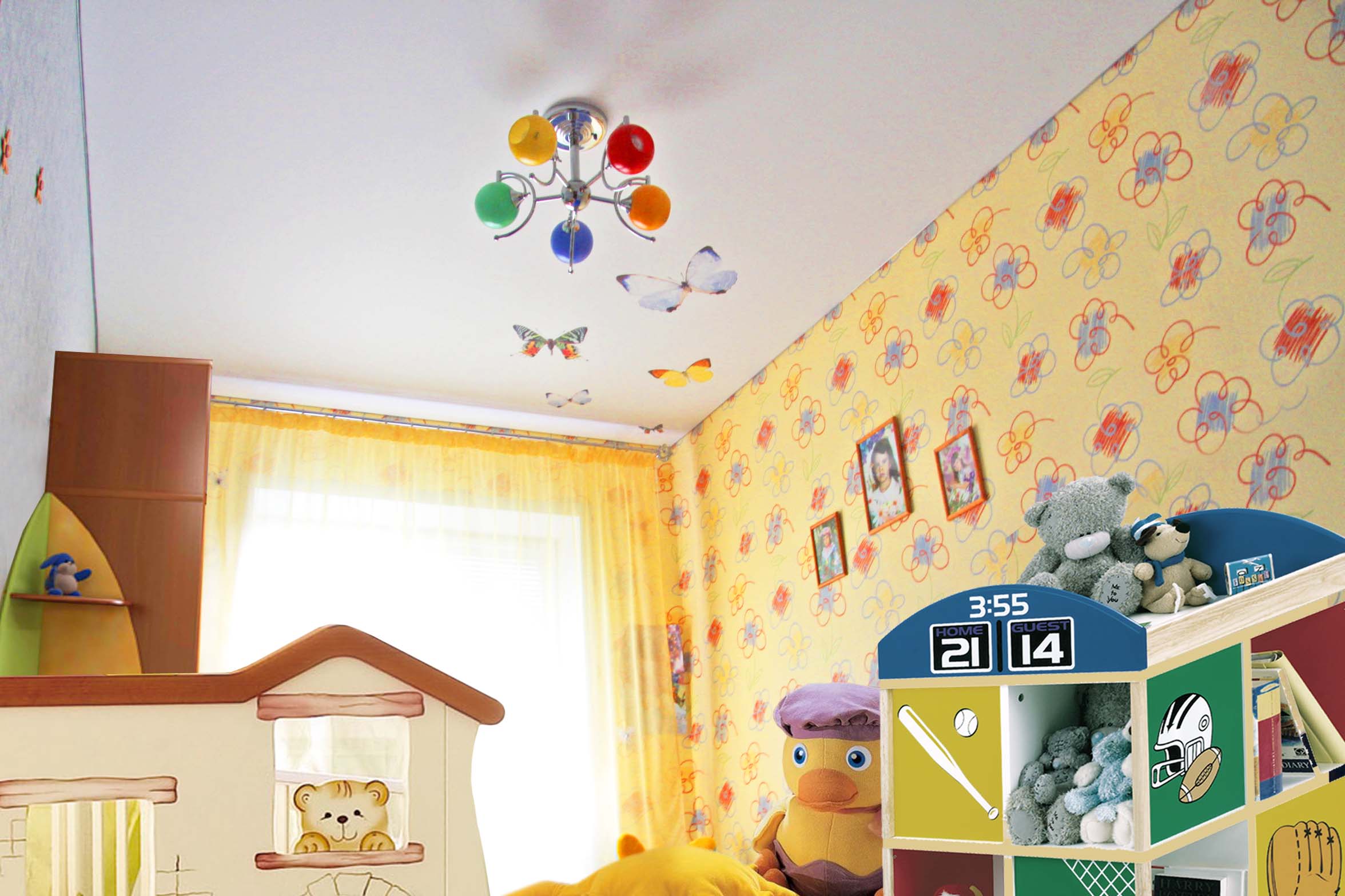 - Die gleiche Regel gilt für das Kinderzimmer. Matte Textur irritiert nicht die Augen und schafft nicht die Illusion der Verwirrung von der Fülle von Objekten, die normalerweise viele im Kinderzimmer sind.