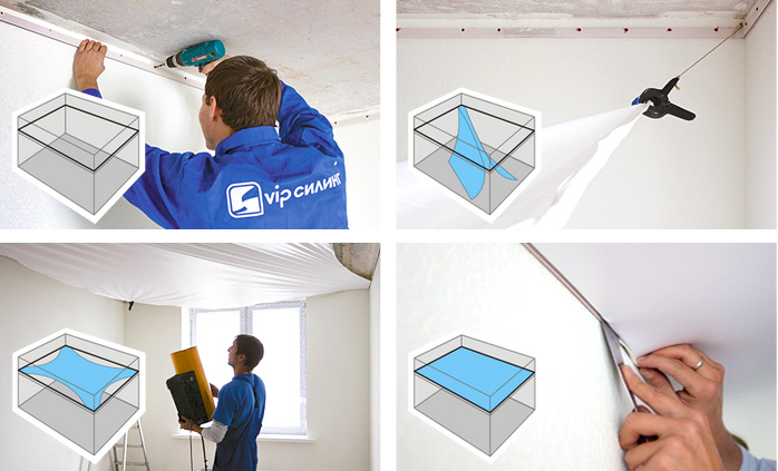 - Unabhängig von der Art des Materials sind solche Decken nicht gegen wesentliche mechanische Beschädigungen und Durchstiche beständig. Wenn das Material aus irgendeinem Grund beschädigt ist, muss es demontiert werden.