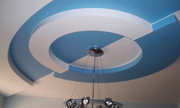 Matte Produkte erscheinen nur auf den ersten Blick einfach. In der Tat sind sie nicht im Design beschränkt und sehen sehr gut aus, wenn sie in hellen Farbtönen ausgeführt werden. Die Textur solcher Oberflächen unterbricht die innere Zusammensetzung nicht, selbst wenn die Decke in einem mehrstufigen Design mit Trockenbau hergestellt wird.