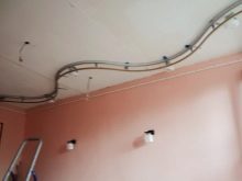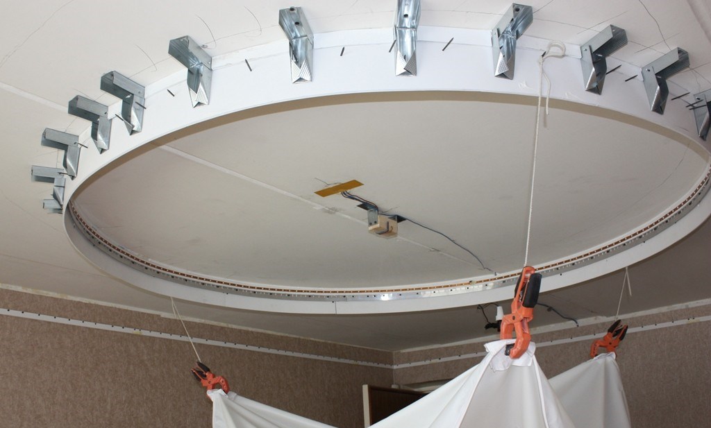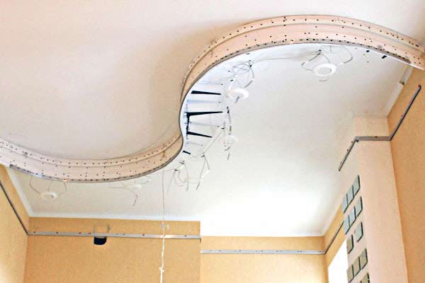 Starten Sie die Selbstinstallation von zwei Deckenebenen, Sie müssen genau verstehen, was Sie wollen. Zuallererst sollten Sie den Umfang der Oberfläche über Ihrem Kopf messen und die ungefähre Menge an Material berechnen, die benötigt wird, um den Raum zu dekorieren. Eine einfache Skizze oder Freihandzeichnung ist schon die halbe Miete. Wenn der Besitzer des Raumes mit seinen schöpferischen Impulsen zufrieden ist, sieht er das Gewünschte in seinem eigenen Kopf und nicht in seinen Gedanken. Erst nach diesen rituellen Tänzen mit Zeichnungen können Sie Materialien und Werkzeuge für die Installation auswählen.