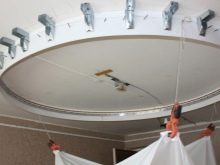 Tücher für zweigeschossige Decken sollten sofort beim Hersteller in der gewünschten Größe und Form bestellt werden. So musste ich dann zu Hause keine unnötigen Sachen schneiden oder schneiden. Es ist besser, mit einem Maßband und einem Bleistift zu messen, der die gemessenen Bereiche markiert. Es ist sehr wichtig, sofort die Höhe der ersten Schwelle der Decke, die dem Betonboden am nächsten liegt, vorherzusehen.damit Sie die Beleuchtung sicher platzieren und nach draußen bringen können. Es sollte nicht vergessen werden, dass einige der Strahler während des Betriebs sehr heiß werden, was die Integrität der Membran beeinträchtigen kann.