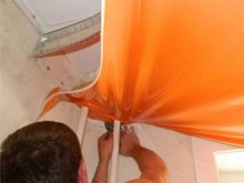 Die Montage einer Spanndecke mit eigenen Händen erscheint nicht so schlimm, wenn Sie sich auf die durchgeführten Messungen verlassen können, und im Hersteller direkt die Leinwände für die neue Beschichtung.Um die PVC-Folie richtig zu strecken, müssen Sie die Temperatur im Raum nicht unter 30 Grad konstant halten. In keinem Fall wird empfohlen, Fenster zu öffnen, einen Luftzug zu erstellen oder durch den zu behandelnden Raum zu blasen.