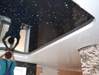 Stofftücher sind viel teurer als PVC-Folie, und sie sehen eleganter und luxuriöser aus. Vinyldecken geben mehr Licht, besonders wenn Sie zusätzliche Vorrichtungen installieren, die auf die glänzende Oberfläche einer solchen Beschichtung ausgerichtet sind. Dann wird es einen Spiegeleffekt geben - und der ganze Raum wird von Licht durchflutet werden.