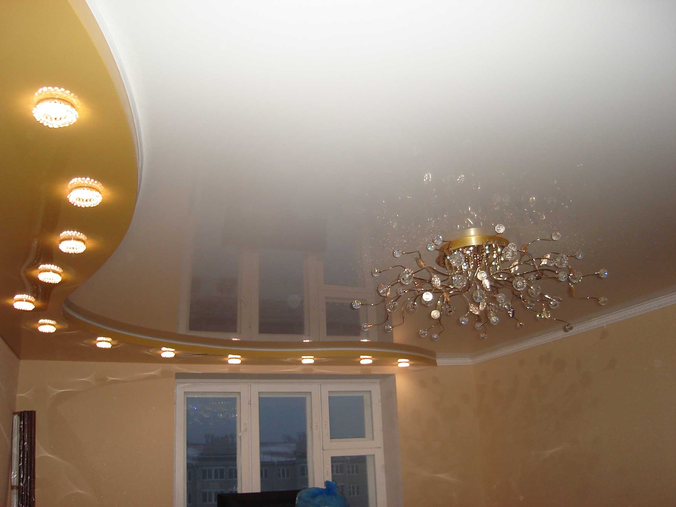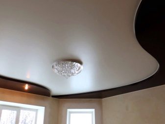 Wenn einfache PVC-Folie über dem Kopf nicht genug war, entschieden flinke Designer, den Anwendungsbereich dieses unkomplizierten Materials zu diversifizieren. Auf dem Höhepunkt der Popularität ist heute die Installation einer zweistufigen Spanndecke, eine Kombination aus Stoff und PVC in der Dekoration solcher Strukturen, Optionen mit Trockenbau, Fotodruck auf Leinwände.Zwei Ebenen Spannungsflächen spielen in die Hände der Bürger, deren ursprüngliche Decke nicht ideal ist. Jeder weiß, wie es tagelang ist, die vorhandene Oberfläche zu nivellieren und zu reinigen, um sie zumindest ein bisschen näher an das zu bringen, was mit Tapeten oder Farbe abgedeckt werden kann. Das Spannungsdesign ermöglicht, solche Kopfschmerzen loszuwerden und die Decke nicht nur glatt, sondern auch schön zu machen.