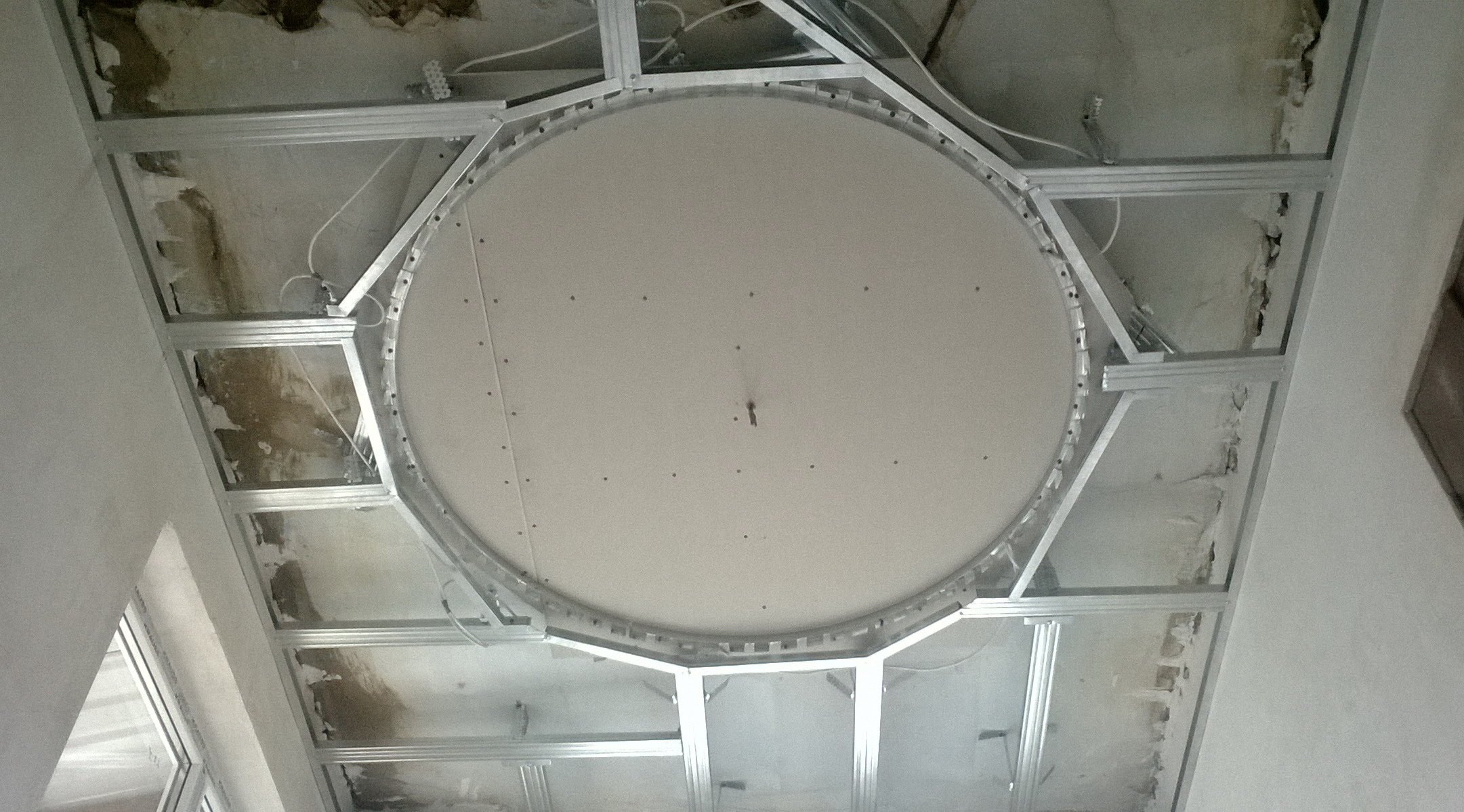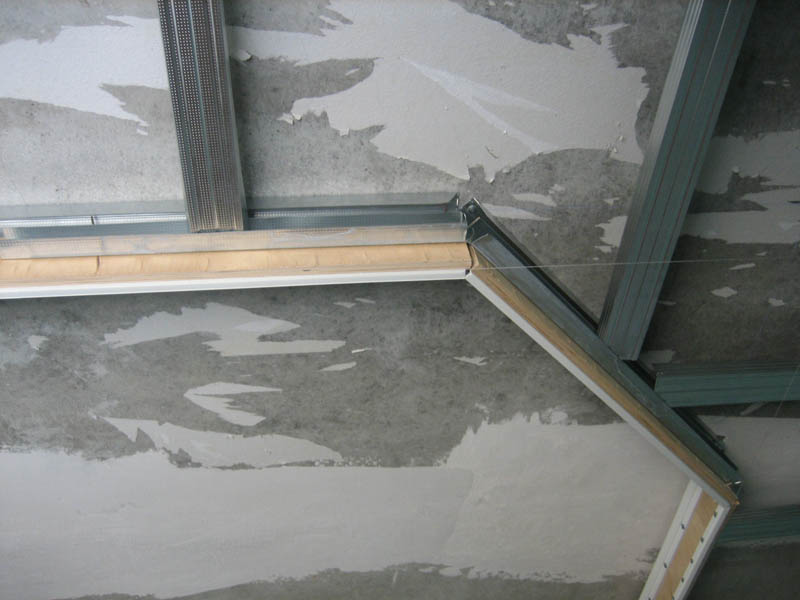 - Aluminiumprofil für den Rahmen und Gipskarton (mit verschiedenen Installationsoptionen);