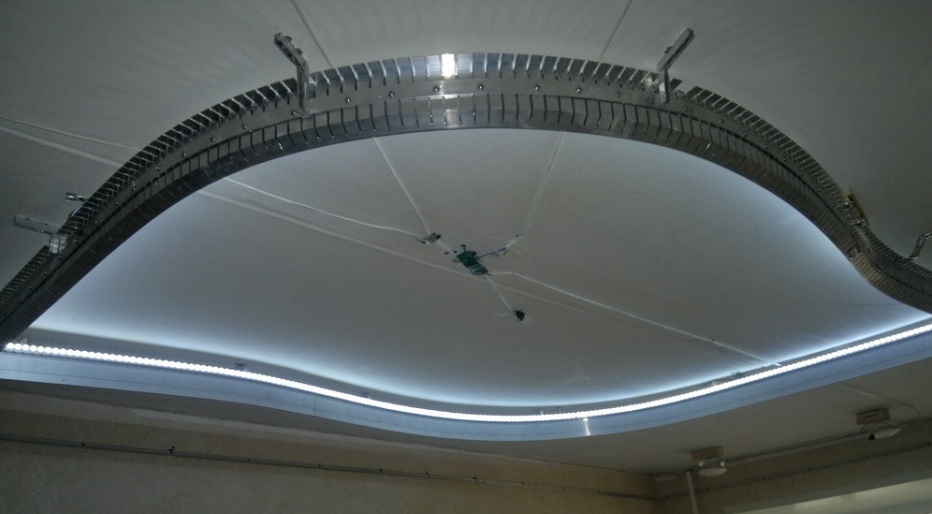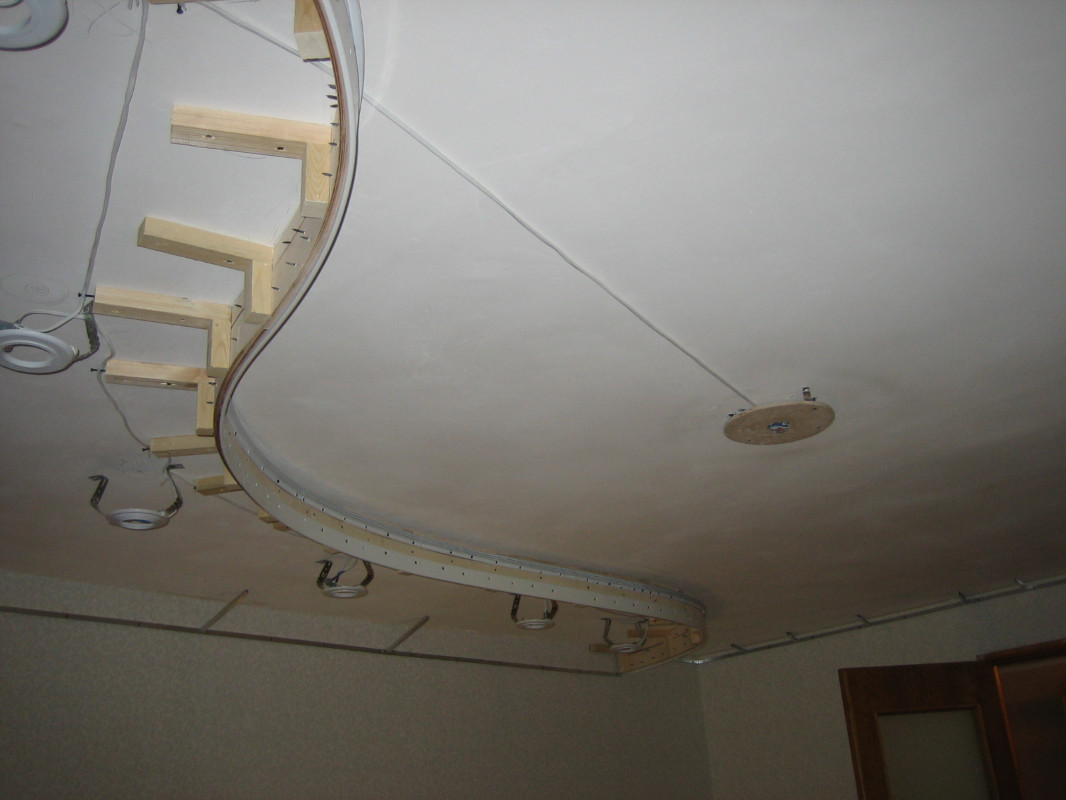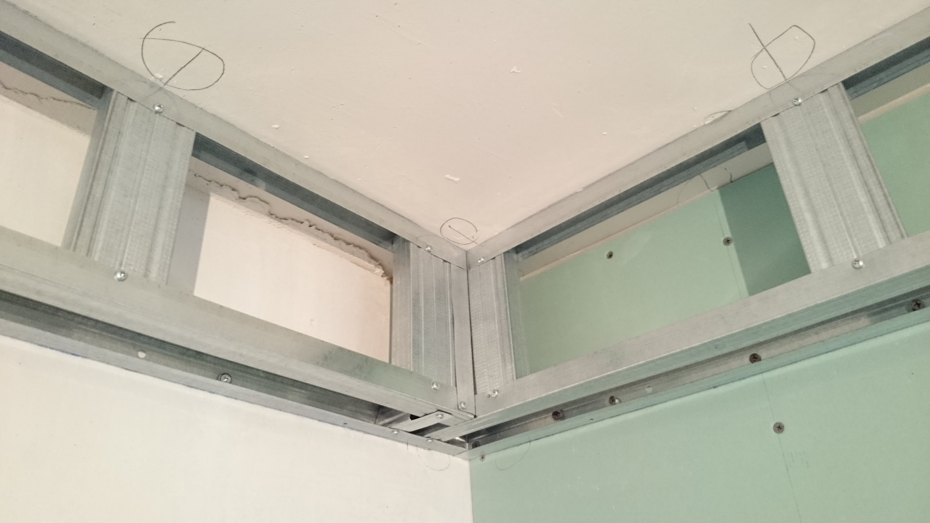 Der allgemeine Rahmen der zweistufigen Spanndecke ist fertig. Als nächstes kommt der lustige Teil.
