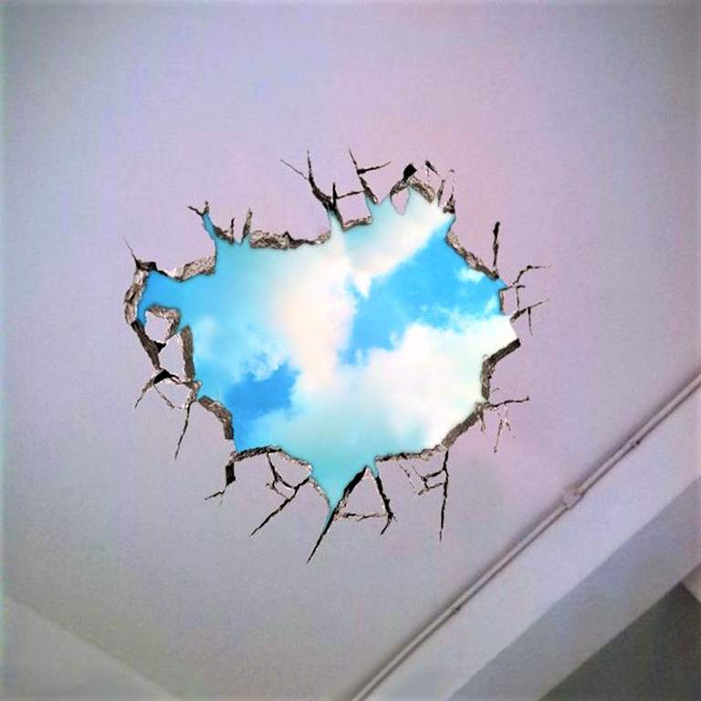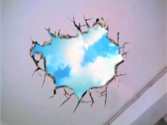 - Zweitens können sie helfen, einige der Fehler in der Decke zu verbergen.Zum Beispiel ist es durchaus möglich, sie mit einem Loch, verschiedenen Arten von Flecken oder sogar kleinen Rissen zu verkleiden. So können Sie auf ernsthafte Reparaturen verzichten, die Mängel beseitigen und das Gesamtbild des vertrauten Raums etwas auffrischen.