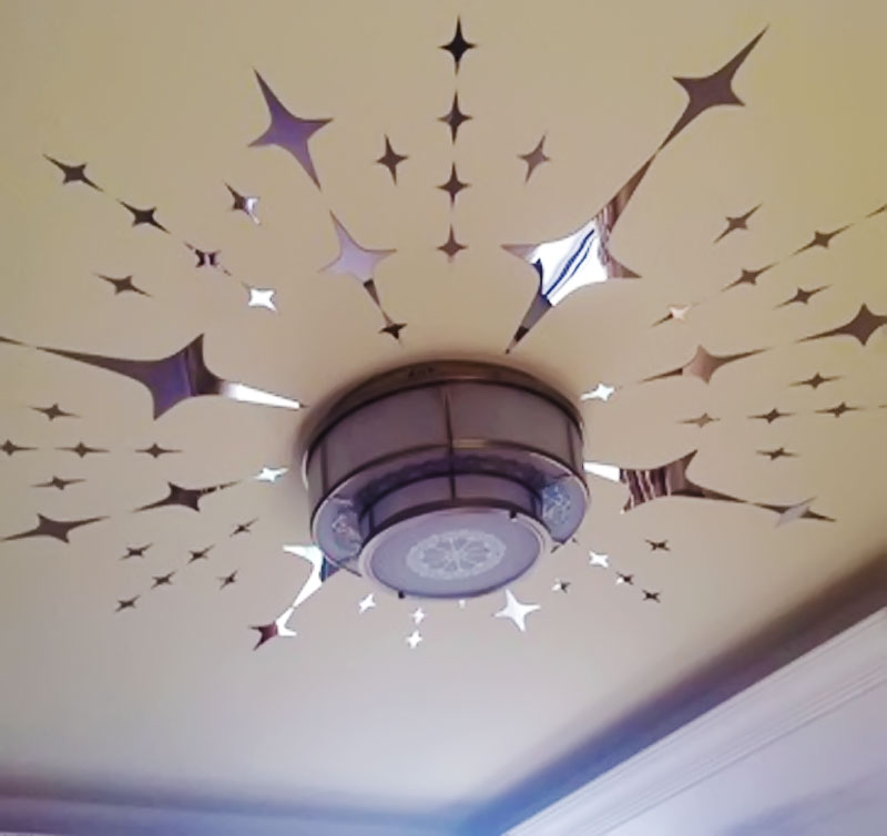 Aufkleber an der Spanndecke: die Feinheiten des Designs