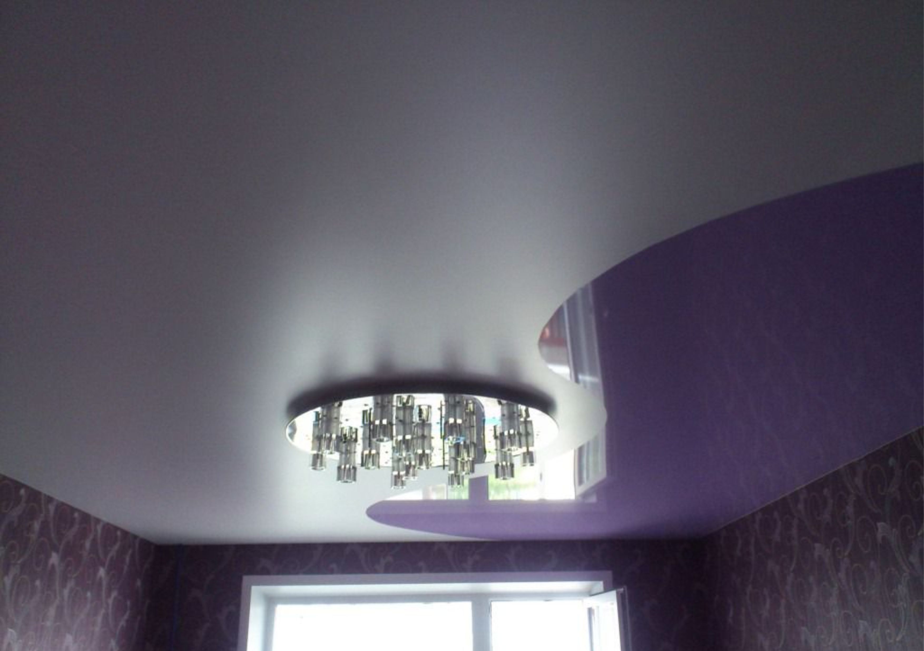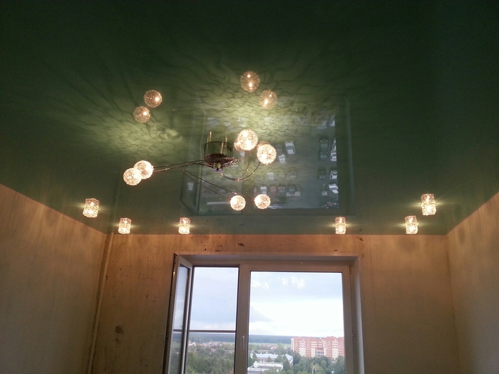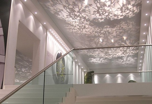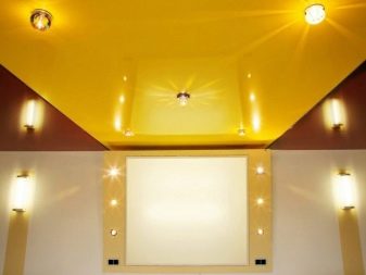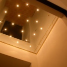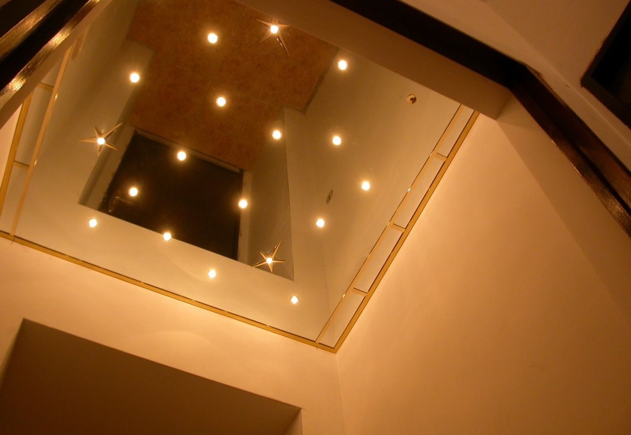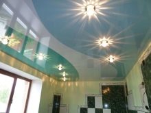 - abgehängte Decke mit einer Oberfläche, die den Spiegel nachahmt, erhöhen visuell die Größe des Raumes; Besonders relevant für Räume mit niedrigen Decken, die auf den Kopf drücken.
