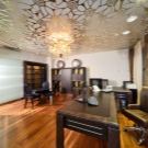 Dekorieren Sie die abgehängte Decke kann Locken oder ein einfaches geometrisches Muster, das in das Gesamtbild des Designs passt und betont seine Spezifität.