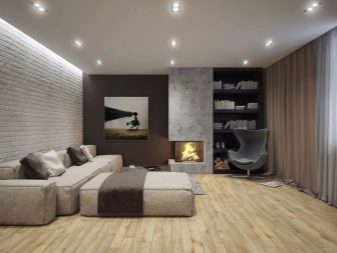 - Es ist ungewöhnlich für einen Stil, eine große Anzahl von in die Decke eingebauten Leuchten zu verwenden;