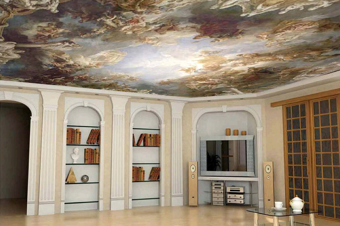 In solch einem Interieur wird es angemessen sein, Spanndecke mit solchen Merkmalen zu schauen: