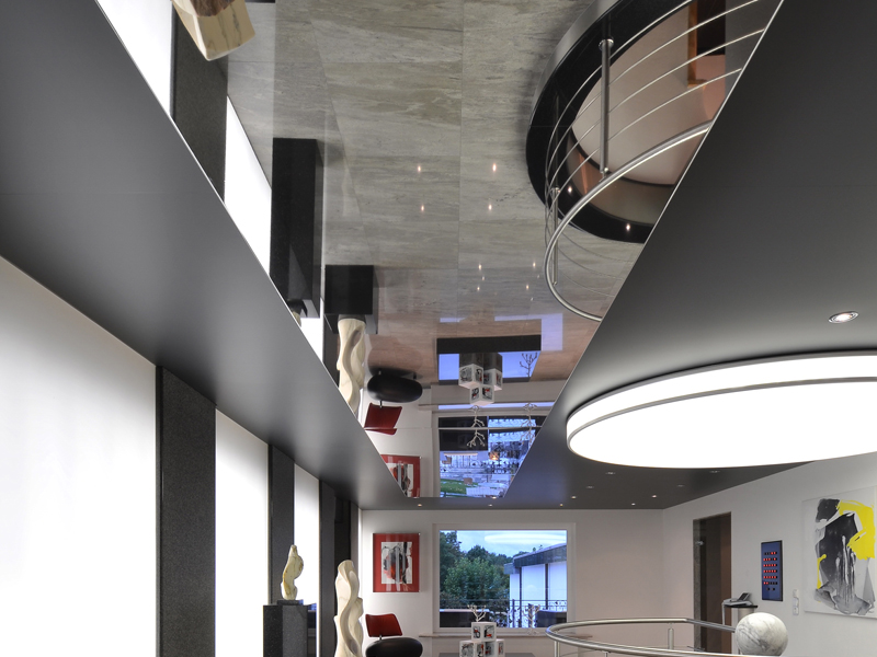 - Die Oberfläche der Spanndecke ist leicht von Staub und Schmutz zu reinigen.