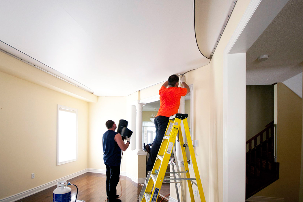 - Das Spannen der Decke erfordert Präzision und Geschicklichkeit: Die Selbstmontage führt wahrscheinlich zu einem Durchhängen der Beschichtung, weshalb es besser ist, in die Arbeit von Fachleuten zu investieren.
