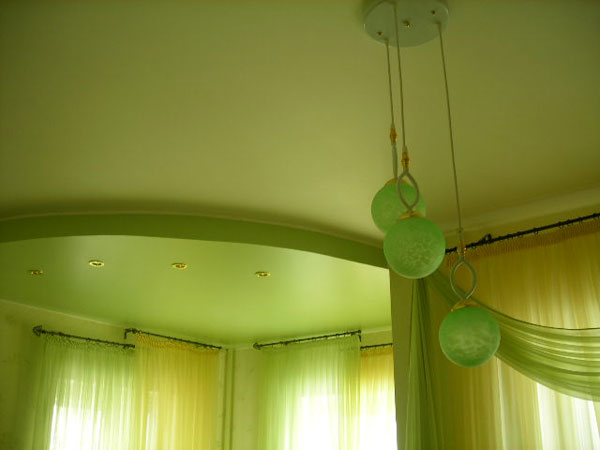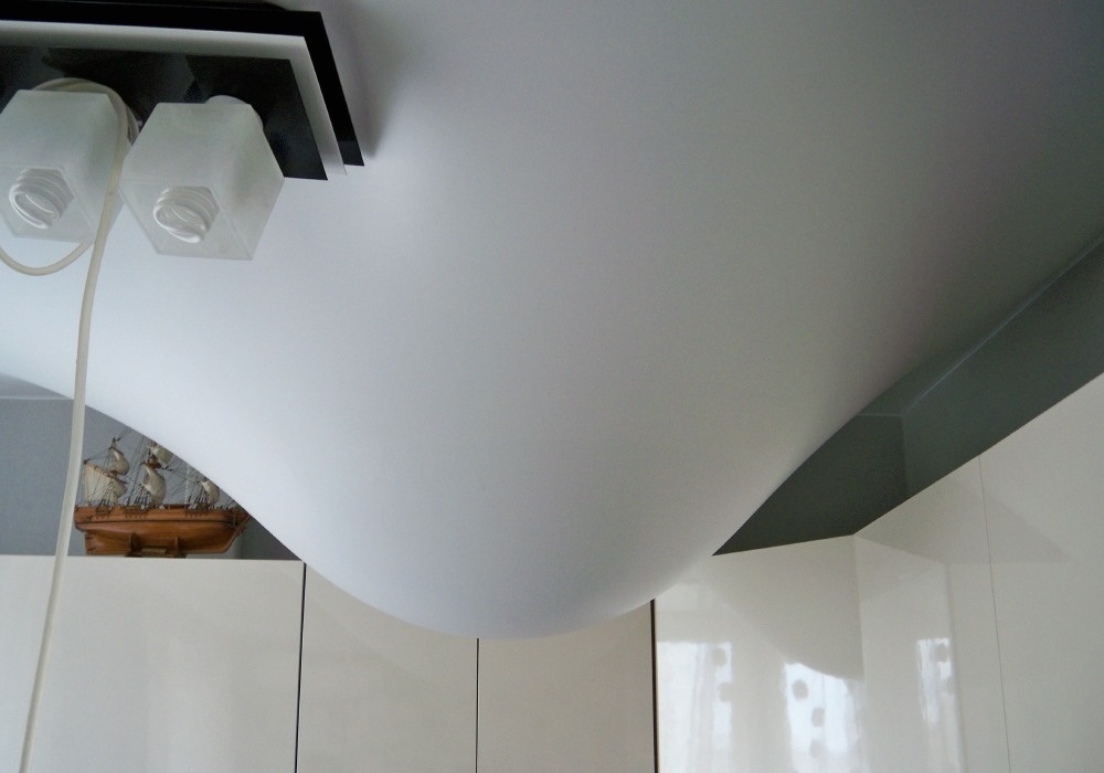 - PVC-Material kann jede Form annehmen, mit der Sie komplexe mehrstufige Deckenkonstruktionen erstellen können.
