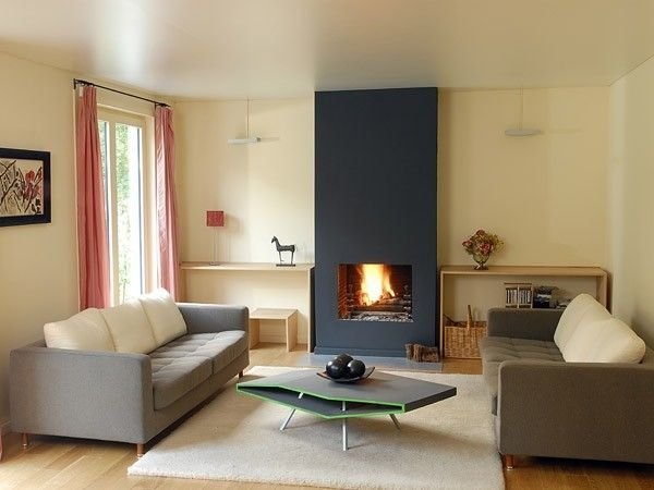 Als zusätzliche Beleuchtung können Sie die versteckten Lichter verwenden. Es erhöht optisch die Höhe der Deckenfläche und erzeugt so einen hohen Effekt. Wenn die Deckenfläche kleinere Unregelmäßigkeiten aufweist, ist es besser, das Modell mit gewölbter Decke anzuwenden, das einen glatten Übergang zur Wand schafft.Das Wohnzimmer mit einer schwarz dekorierten Decke mit schneeweißen Einsätzen und Dekorelementen sieht ursprünglich aus.