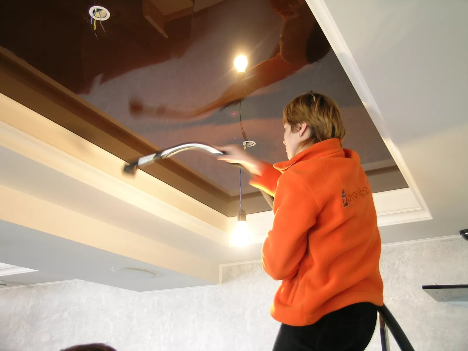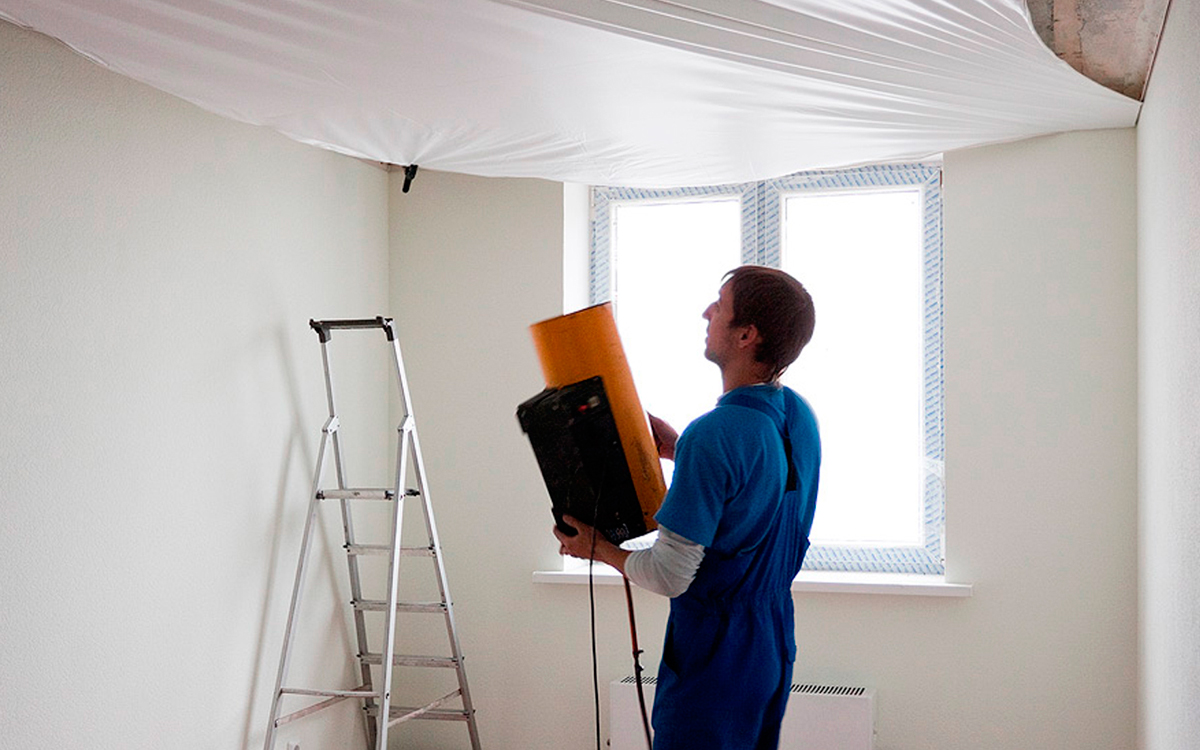 - Es ist sehr wichtig zu wissen, was im Falle einer Beschädigung der Decke zu tun ist, da Notsituationen, insbesondere in Wohnhäusern, alles andere als ungewöhnlich sind. Wenn die Decke überflutet ist, schalten Sie den Raum spannungsfrei und versuchen Sie so schnell wie möglich, das Wasseraufnahmeproblem zu beheben. Da die meisten Menschen keine besondere Erfahrung in der Wiederherstellung des Spanngewebes haben, wird empfohlen, einen qualifizierten Meister zu benennen. Zusätzlich zu der Tatsache, dass der Spezialist weiß, wie er die vorherige Form an das Spanngewebe zurückgibt, wird er sie notwendigerweise mit einer speziellen Anti-Pilz-Beschichtung verarbeiten, so dass das Gewebe nicht kollabiert.
