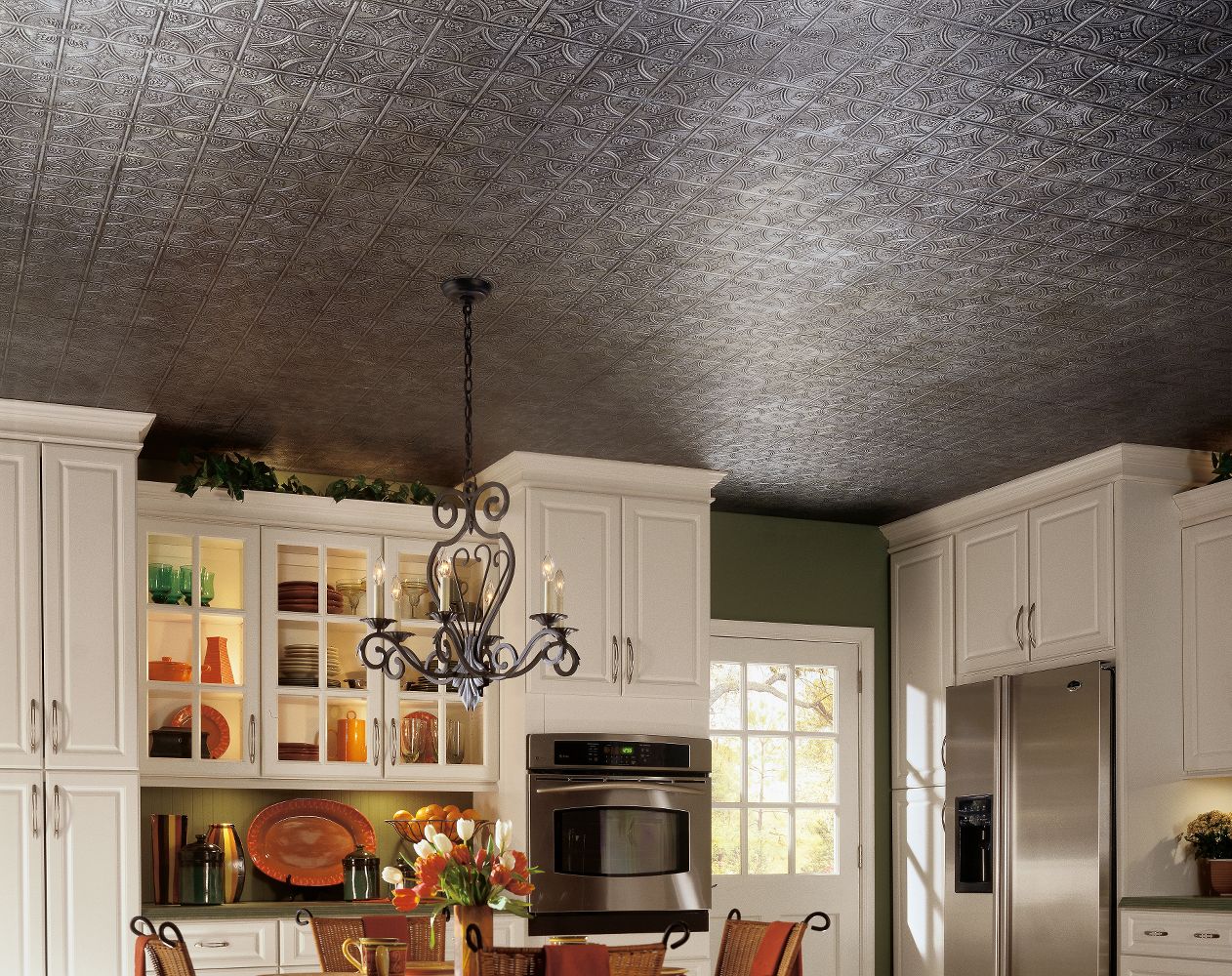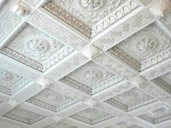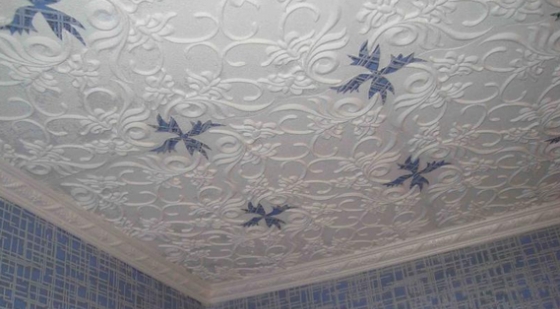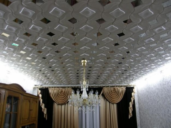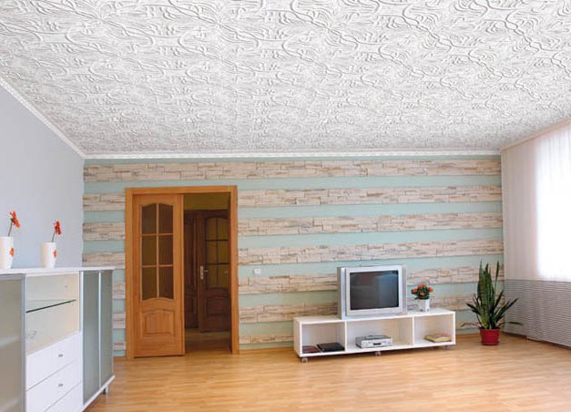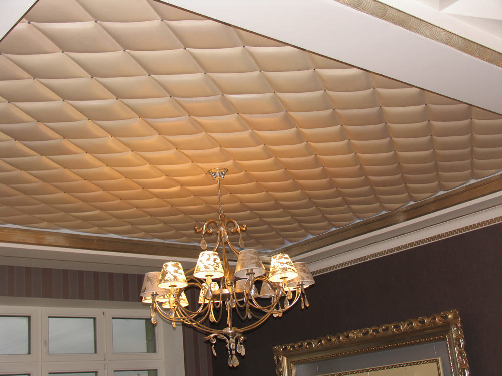 Eine breite Palette von Farben und Texturen von nahtlosen Fliesen ermöglicht es Ihnen, die Decke in jedem Stil zu dekorieren, was ein offensichtlicher Vorteil des Materials ist.